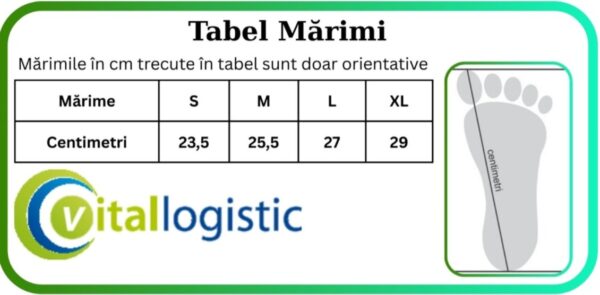 Alegerea mărimii potrivite: Alegeți mărimea în funcție de tabelul de mai jos . Dacă piciorul este bandajat, luați în considerare volumul suplimentar.